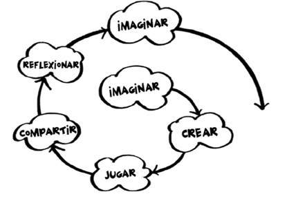 Resnick nos propone una estrategia para este mundo cambiante: “el éxito se basa no solamente en lo que sabes o en cuánto sabes, sino más bien en tu habilidad para pensar y actuar creativamente” , y para ello nos propone una metodologría de espiral creativo, consultar en siguiente artículo sobre creación colectiva, crowdsourcing y conocimiento abierto y que tiene muchas similitudes con metodologías de pensamiento de diseño (design thinking) y eXperiencia de Usuario (UX)